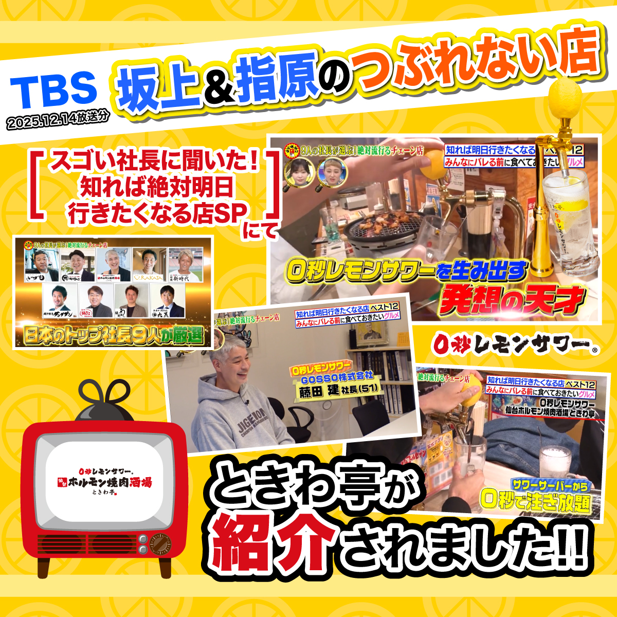 【📺テレビで紹介されました!】TBSテレビ『坂上&指原のつぶれない店』で、ときわ亭が紹介されました!